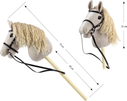 A MILLY MALLY márka bájos hobbilova rúdon örömet szerez a kis lovasoknak otthon és a szabadban is. Puha plüss fejjel realisztikus részletekkel, masszív fa rúddal a stabil „lovaglásért” és hosszú kantárral a könnyű fogásért. A játékkal fejlődik a képzelet, a nagymozgások és támogatja a mozgást.