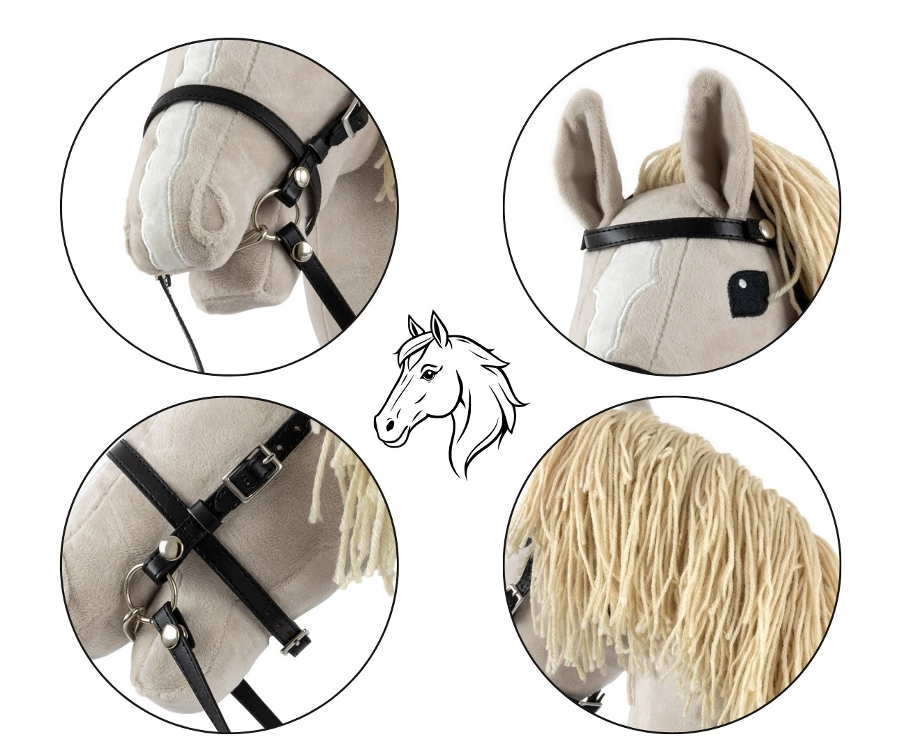 A hosszú kantár és a fejszár segít a gyerekeknek vezetni a lovacskát, erősítve az igazi lovaglás élményét.