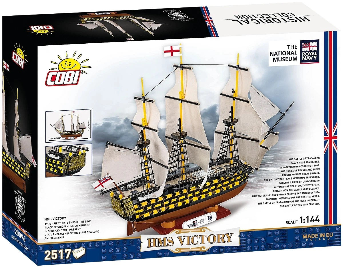 A modell a National Museum of the Royal Navy hivatalos licencével készült, és teljes mértékben kompatibilis más márkák építőkészleteivel. Ideális ajándék a haditengerészeti történelem, a napóleoni háborúk kedvelőinek és a reprezentatív hajómodellek gyűjtőinek.