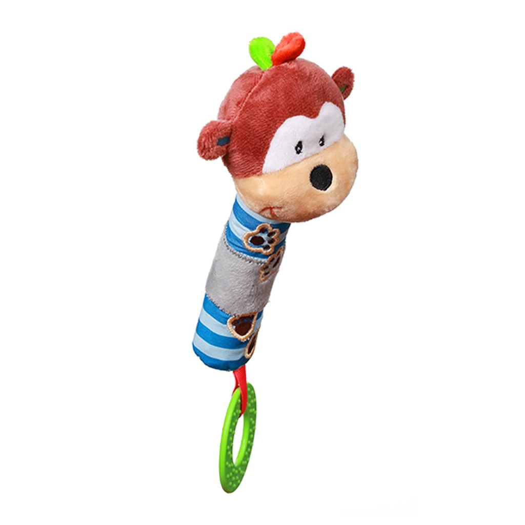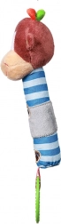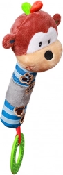 A bájos majmocska a legkisebbeknek egyesíti a sípoló játékot és a puha rágókát egyben. A puha plüssnek, a könnyű fogásnak és a vidám hangnak köszönhetően támogatja az érzékelés és a finommotorika fejlődését. Ideális társ a babáknak 6 hónapos kortól.