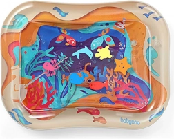 A vizes játszómatrac egy mini otthoni tornasarok, amely segíti a nyak-, hát-, has- és végtagizmok erősödését. Játék közben a baba figyeli, ahogy a színes formák és tengeri állatkák a vízben mozognak, így gyakorolja az egyensúlyt, a szem–kéz koordinációt, valamint a finom- és nagymotorikát.
