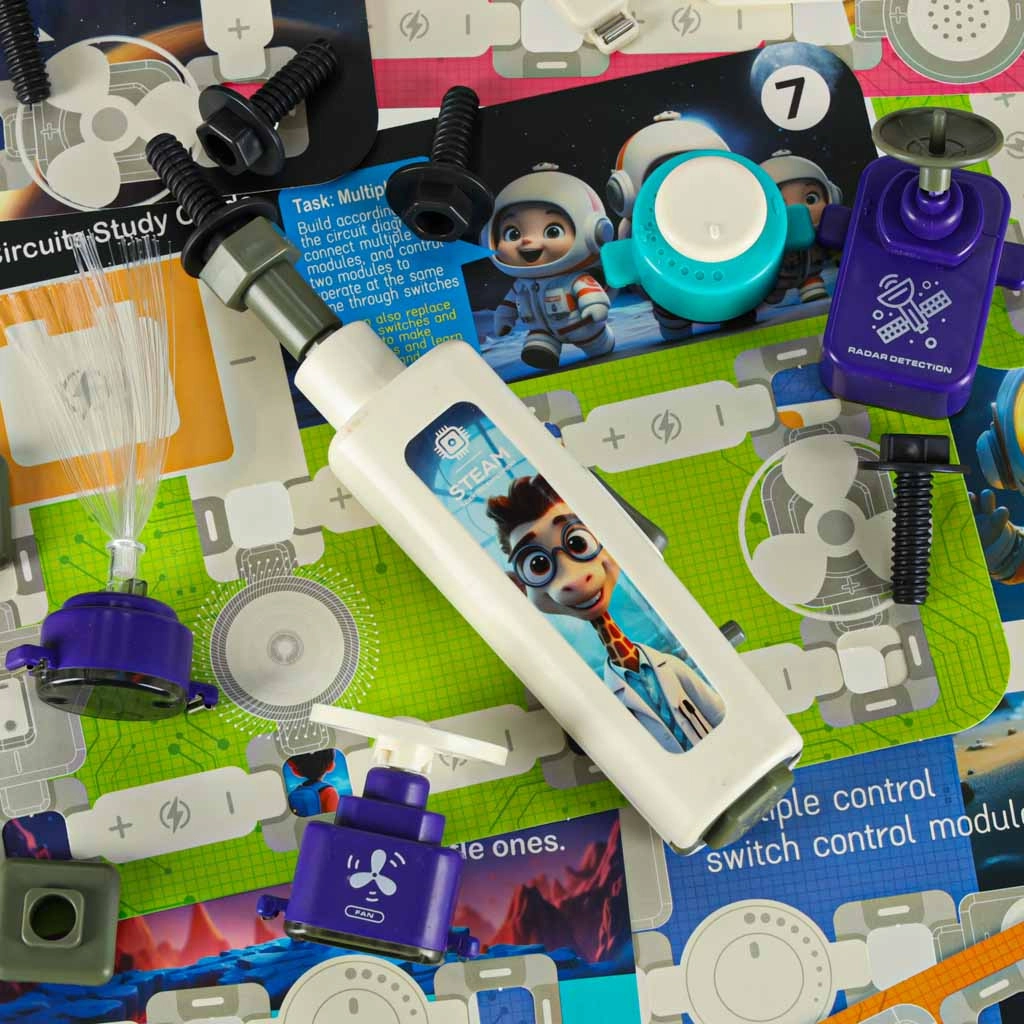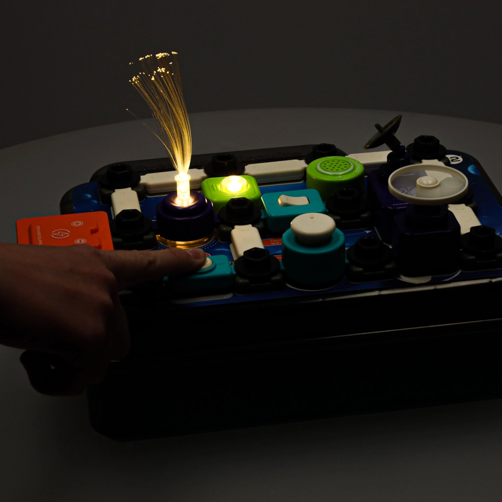 Ez az okos STEM készlet biztonságos és szemléletes bevezetést nyújt a gyerekeknek az elektromos áramkörök világába. A moduláris elemek egyszerű módon kapcsolódnak, és minden beépített alkatrész azonnal megmutatja az eredményt – felgyulladó fény, megszólaló dallam vagy forgó ventilátor. Az interaktív, világító áramköri kulcs segít megérteni, mit jelent az áramkör zárása.