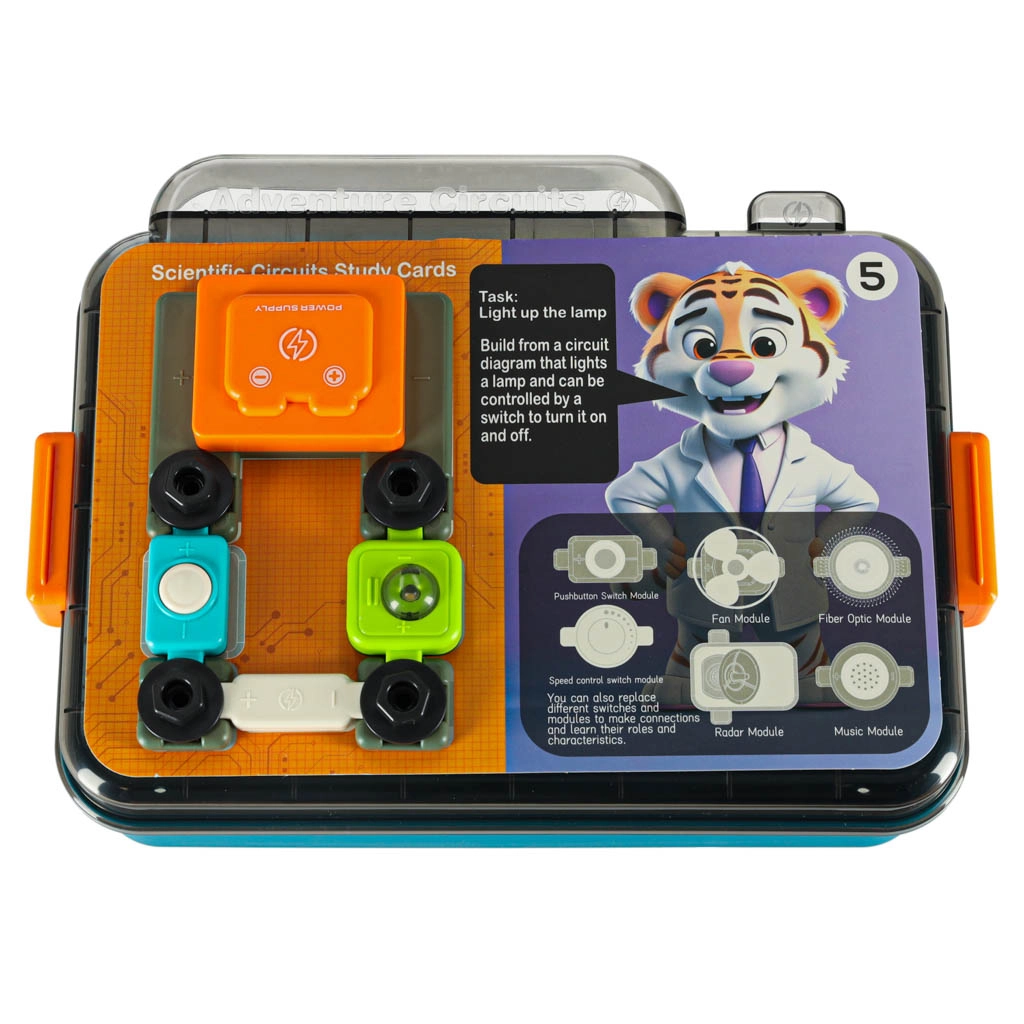 A moduláris elemek az alaplapba pattinthatók, és a jól jelölt alkatrészeknek köszönhetően a gyerekek gyorsan megértik a tápellátás, a kapcsolók és a fogyasztók működési elvét. Az azonnali visszajelzés növeli a tanulási motivációt.