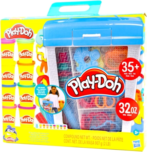 Fedezd fel az alkotás végtelen lehetőségeit a PLAY-DOH kreatív készlettel 3 éves kortól. Tartalma: 8 nagy tégely gyurma (907 g), több mint 35 eszköz és egy praktikus tárolókoffer átlátszó tetővel és 6 mókás textúrával. A gazdag felszerelésnek köszönhetően a gyerekek könnyedén készítenek állatokat, növényeket, figurákat és különféle formákat, miközben fejlődik a képzelőerejük és a finommotorikájuk.