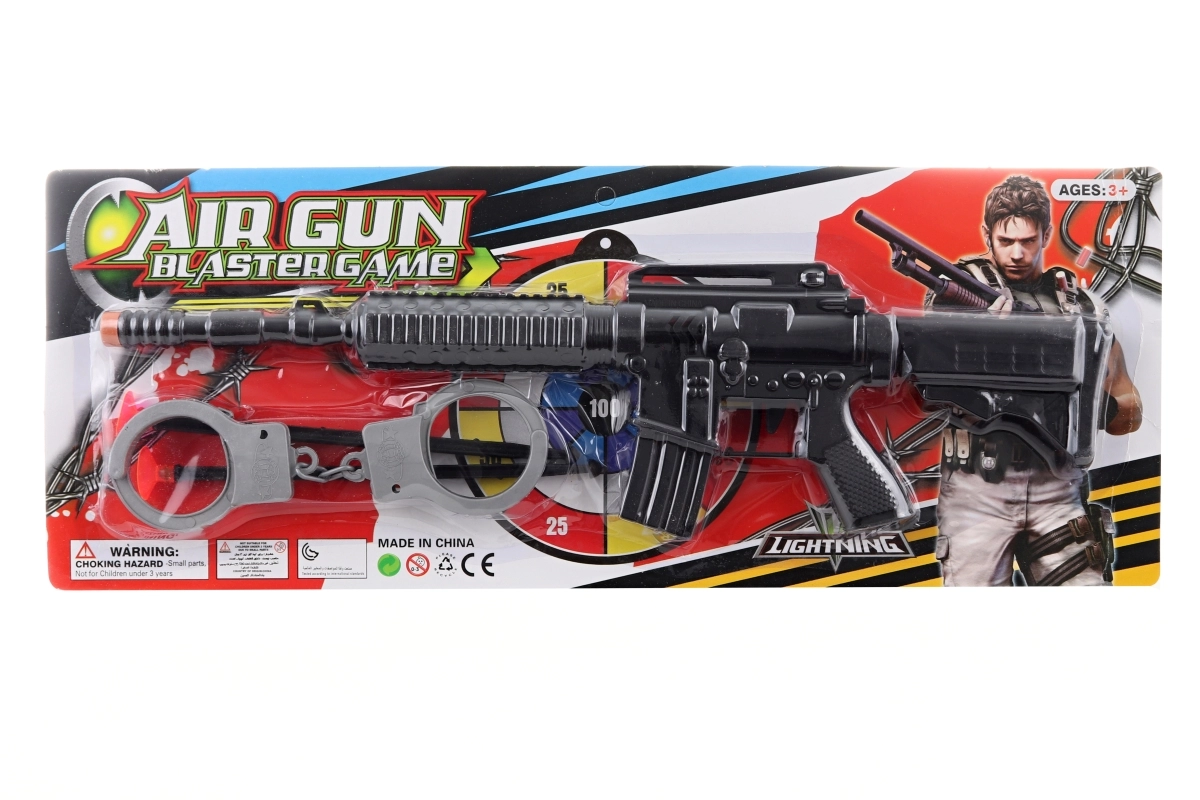- Géppisztoly, 2 tapadókorongos lövedék, gyermekbilincs