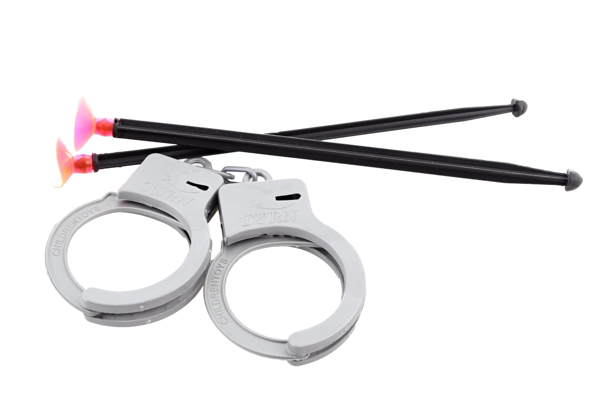 Könnyű műanyag bilincsek támogatják a szerepjátékot és a fantázia fejlődését rendőrségi jelenetek során.