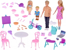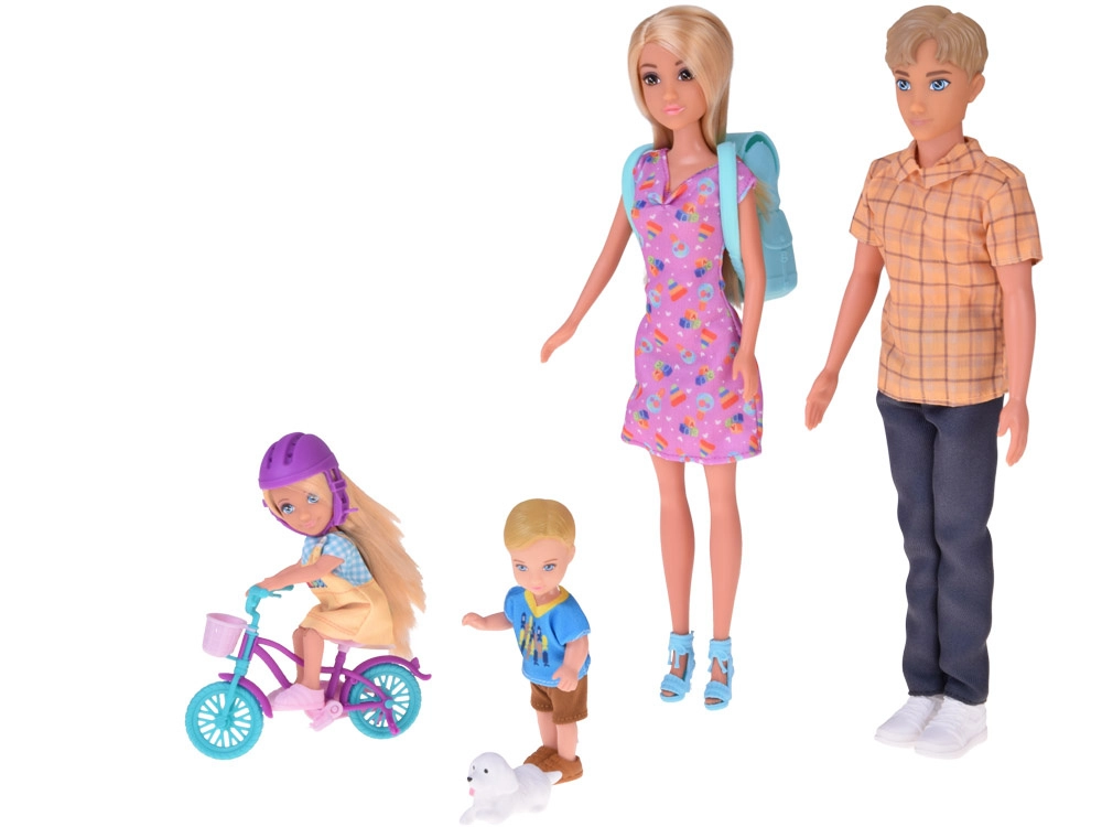 Négy baba részletgazdag öltözékkel és mozgatható ízületekkel, hogy a gyerekek eljátszhassák a mindennapokat a reggelitől az esti pihenésig. A készlet része egy aranyos kiskutya is.