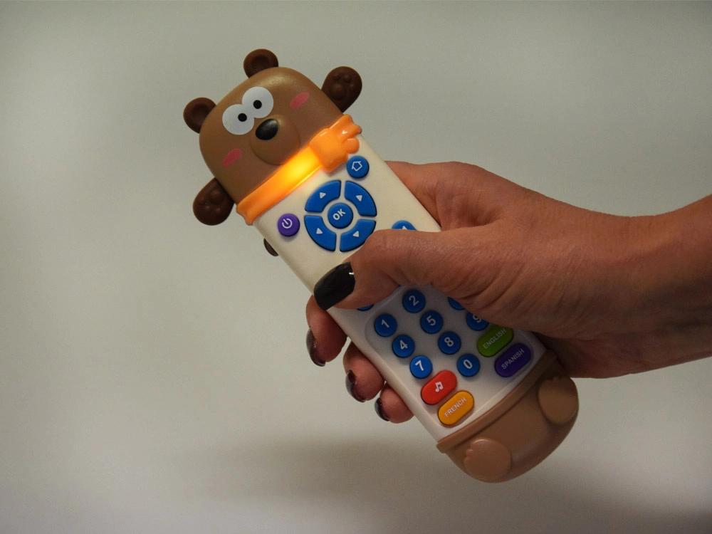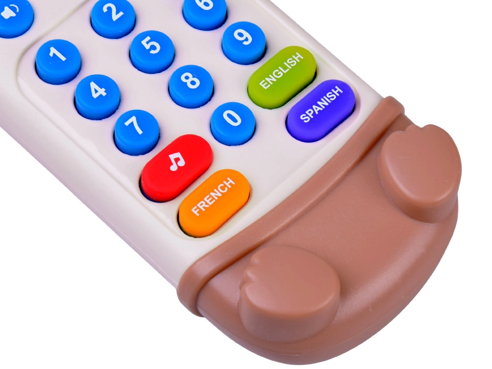 Ez az interaktív, maci alakú távirányító úgy néz ki, mint egy valódi távvezérlő, de emellett puha gumis fülekkel és tappancsokkal rendelkezik rágókaként. A színes, jól áttekinthető gombok felfedezésre ösztönöznek, a biztonságos kialakítás pedig a legkisebbek számára készült.