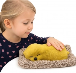 A bájos, alvó labrador a puha párnácskán minden állatkedvelőt elbűvöl. A valósághű figura selymes „bundája” igazi kölyökkutyára emlékeztet, és ugatáshangokat kínál még nagyobb szórakozásért. Ideális dekorációként, ajándéknak vagy gyengéd megnyugtató játéknak gyerekeknek.