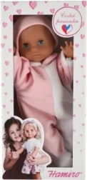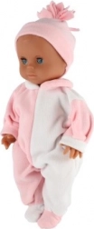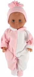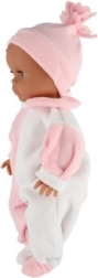 Ez a valósághű baba remek társ a mindennapos játékhoz. Merev teste jól tartja a formát, könnyen öltöztethető, és gyakori használat mellett is tartós. A stílusos fehér-rózsaszín overál és a kedves rózsaszín sapka kiemeli finom megjelenését.