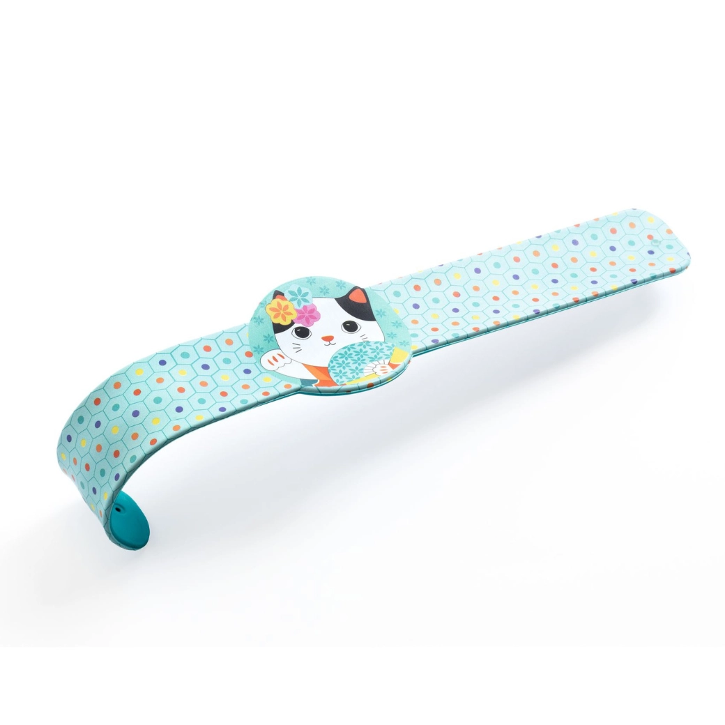 A cuki DJECO snap karkötők játékos kiegészítők gyerekeknek. A rugalmas pántnak köszönhetően egy koppintásra gyorsan és finoman körbeölelik a csuklót, és egész nap a helyükön maradnak. A színes minták és a domború dísz – cica, szívecske vagy nyuszi – különleges bájt adnak az öltözetnek.