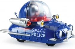 A Djeco Crazy Motors Space Police autó intergalaktikus kalandot hoz a gyerekszobába. A kék rendőrautó SPACE POLICE felirattal átlátszó kupolát kapott apró pilótafigurával, ezüstös rakéta-részletekkel és simán futó kerekekkel. Szuper önálló játékhoz és a Crazy Motors gyűjtemény bővítéséhez is.