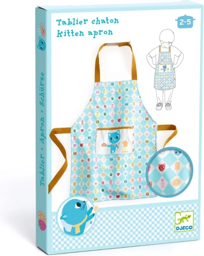 Aranyos gyerek konyhai kötény a kis konyhai segítőknek. Praktikus ruhavédelmet, kényelmes viselést és minőségi kivitelezést kínál a DJECO márkától – ideális az első főzéshez, sütéshez és kreatív alkotáshoz.
