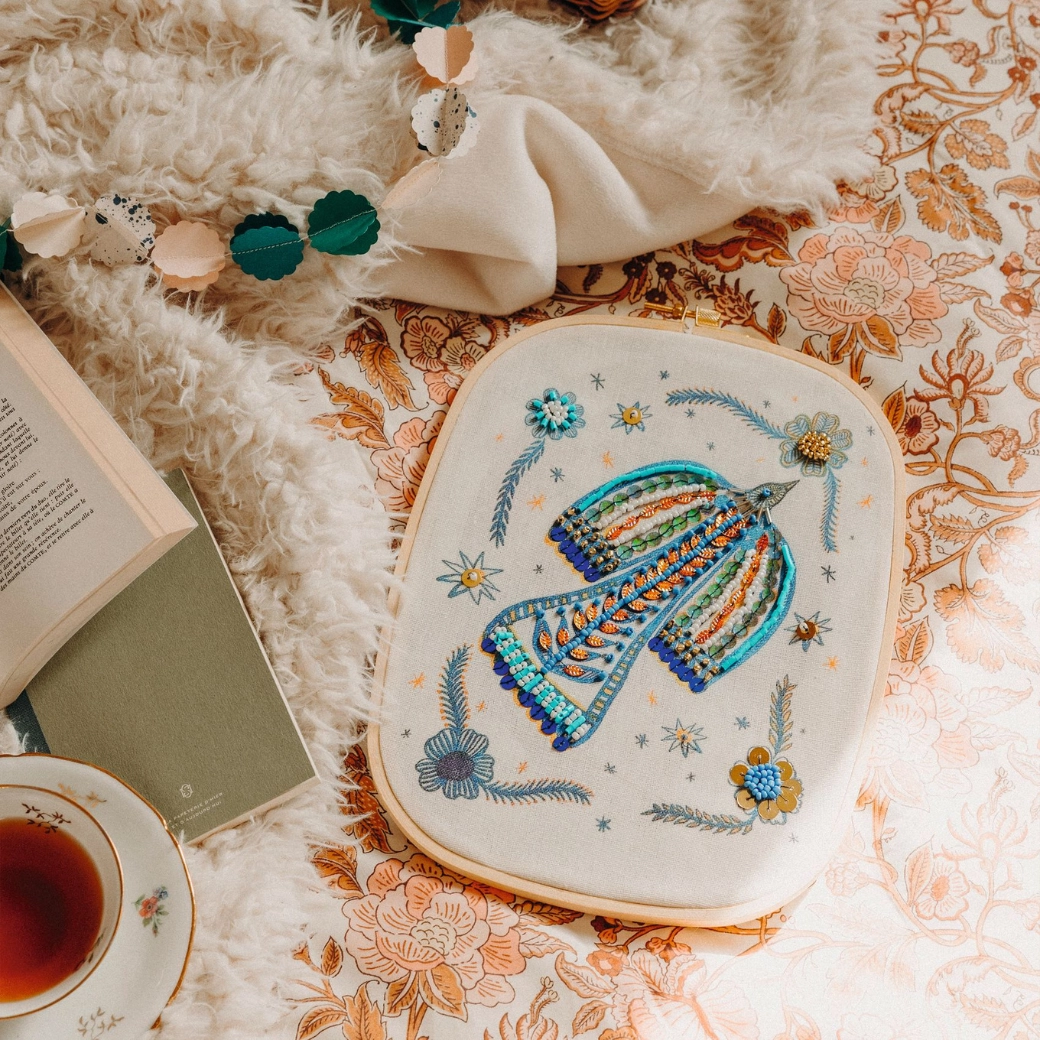 Emelje ki a részleteket gyöngyökkel és élénk árnyalatokkal. Az eredmény luxushatású, tökéletes dekorációkhoz és textilkiegészítőkhöz.
