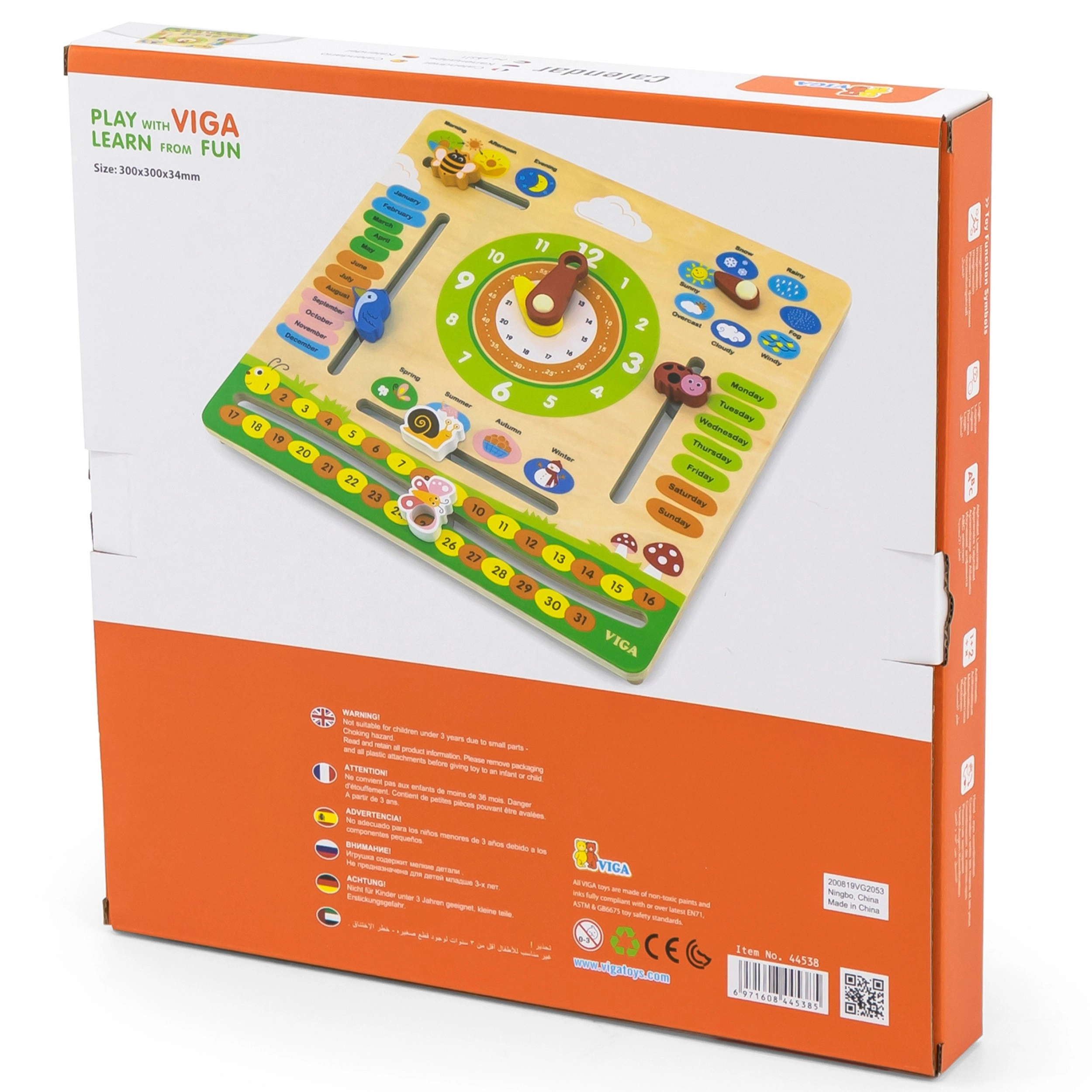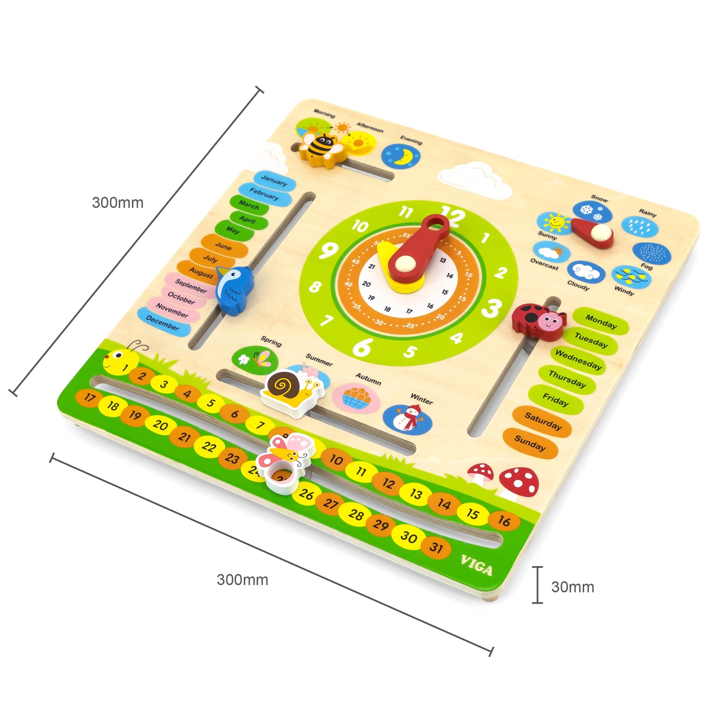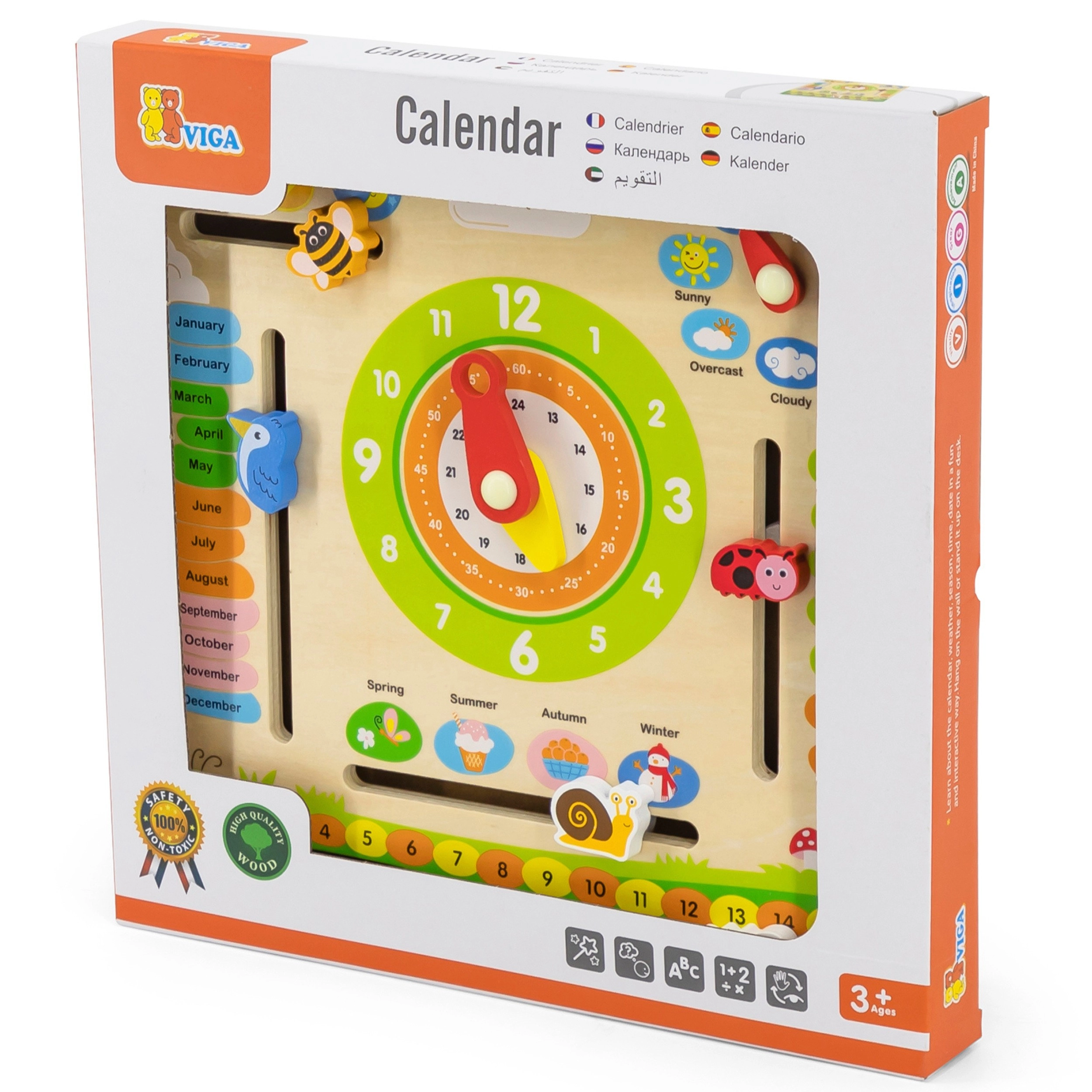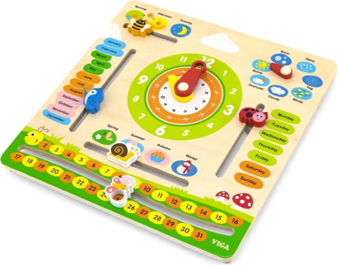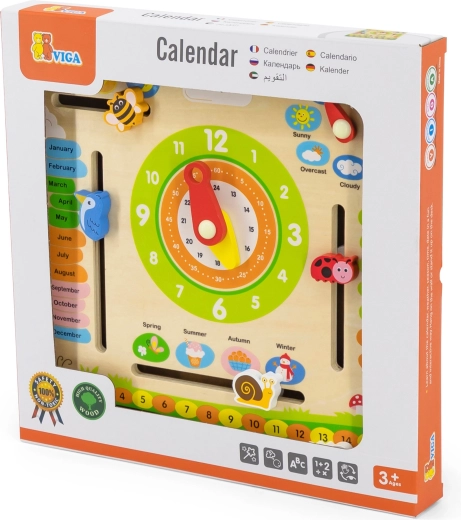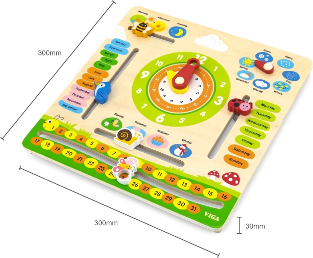 VIGA oktatási naptár ideális eszköz a gyerekek számára az idő, az időjárás változásai és az évszakok tanulásához. A színes és mozgatható elemeknek köszönhetően segít a mindennapi időfogalom megértésében.
