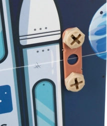 Ez a kreatív 3D építőkészlet a játékot tanulássá alakítja. Az elektromos csavarhúzóval a gyerekek könnyedén felcsavarozhatják a színes elemeket a perforált lapra, és 2D, illetve 3D űrmodelleket építhetnek – a rakétáktól a bolygókig. A mackó formájú kofferdoboz stabil alapként és az összes komponens praktikus tárolójaként szolgál.