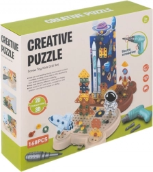 Fedezd fel az építés kreatív világát az űr témájú 3D gyerek építőkészlettel! A szett 161 darabot, praktikus elektromos csavarhúzót cserélhető bitekkel és egy aranyos mackó alakú dobozt tartalmaz, amely perforált szerelőlapként is szolgál. A gyerekek fejleszthetik finommotorikájukat, logikus gondolkodásukat, és megalkothatják saját rakétáikat, bolygóikat és járműveiket.