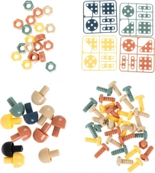 - Műanyag csavarok és anyák, színes konstrukciós elemek, építőkártyák, vállpánt hordozáshoz