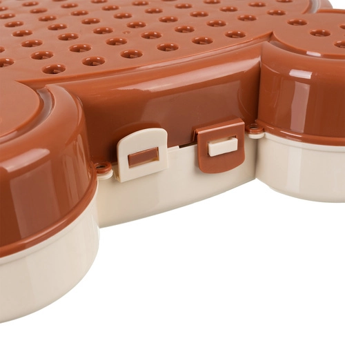 Az aranyos doboz szerelőlapként és az összes alkatrész tárolójaként is szolgál. Könnyű hordozás vállpánttal, biztonságos reteszekkel a stabil zárásért.