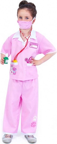Fantasztikus többrészes jelmez, melynek köszönhetően minden kislány valódi állatorvosnak érezheti magát. Lenyűgöző, gyerekeknek szóló állatorvosi jelmez, apró részletekig kidolgozva. A készlet tartalmaz egy rózsaszín felsőt és nadrágot stílusos állatos mintával.