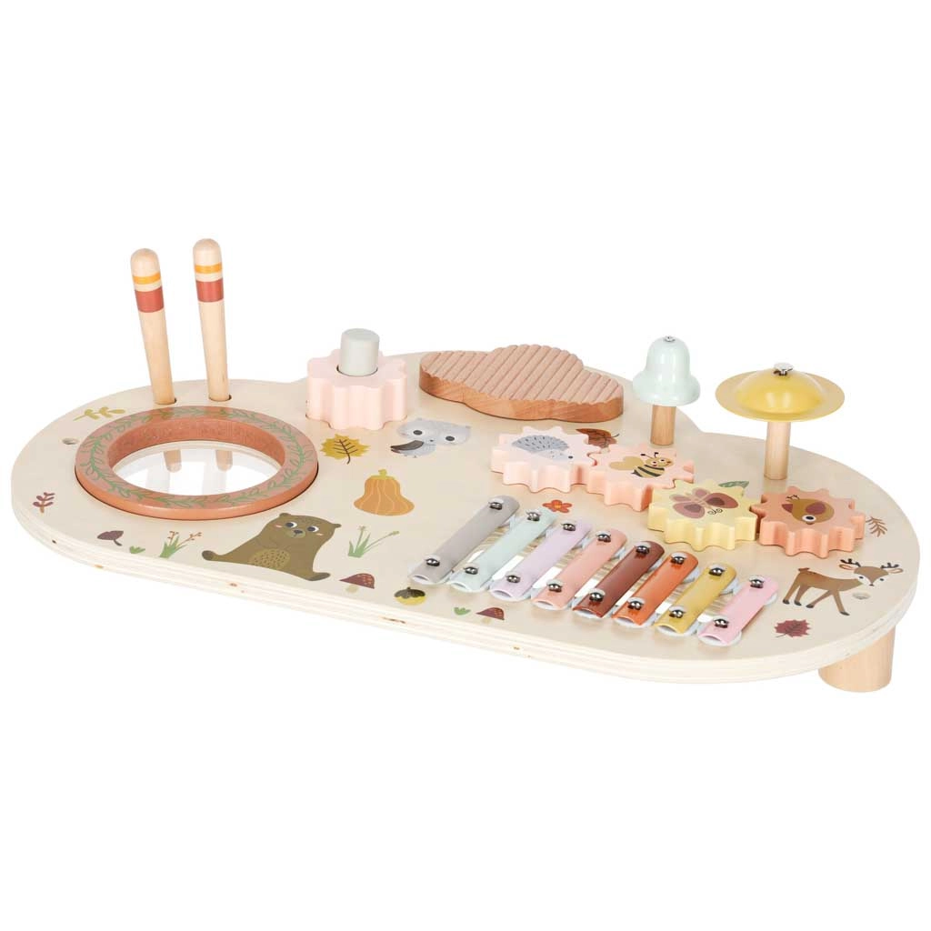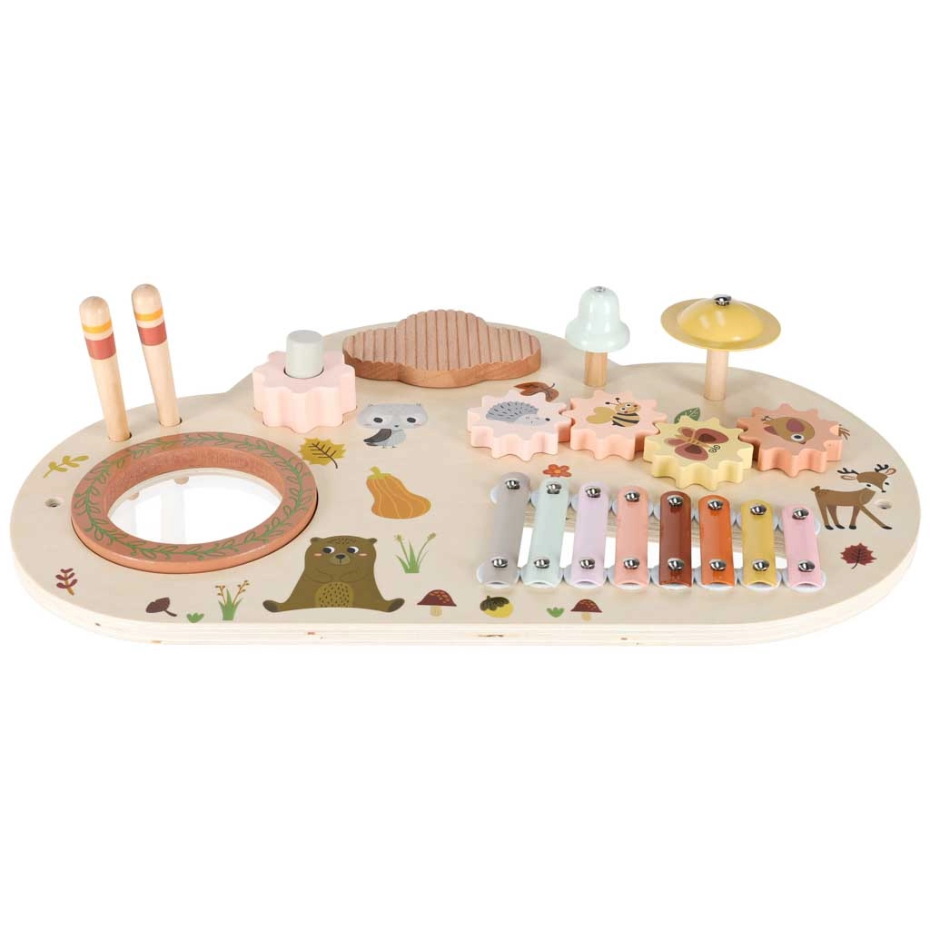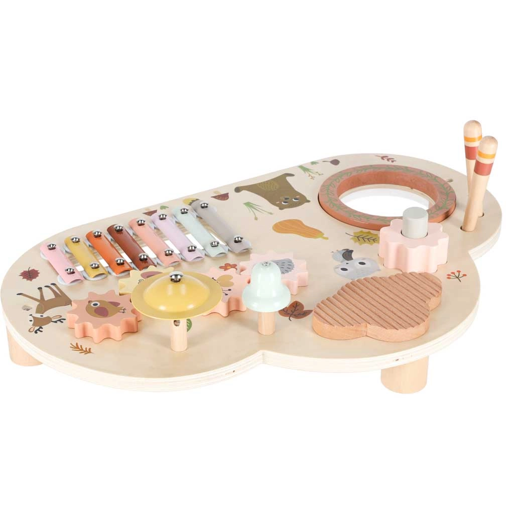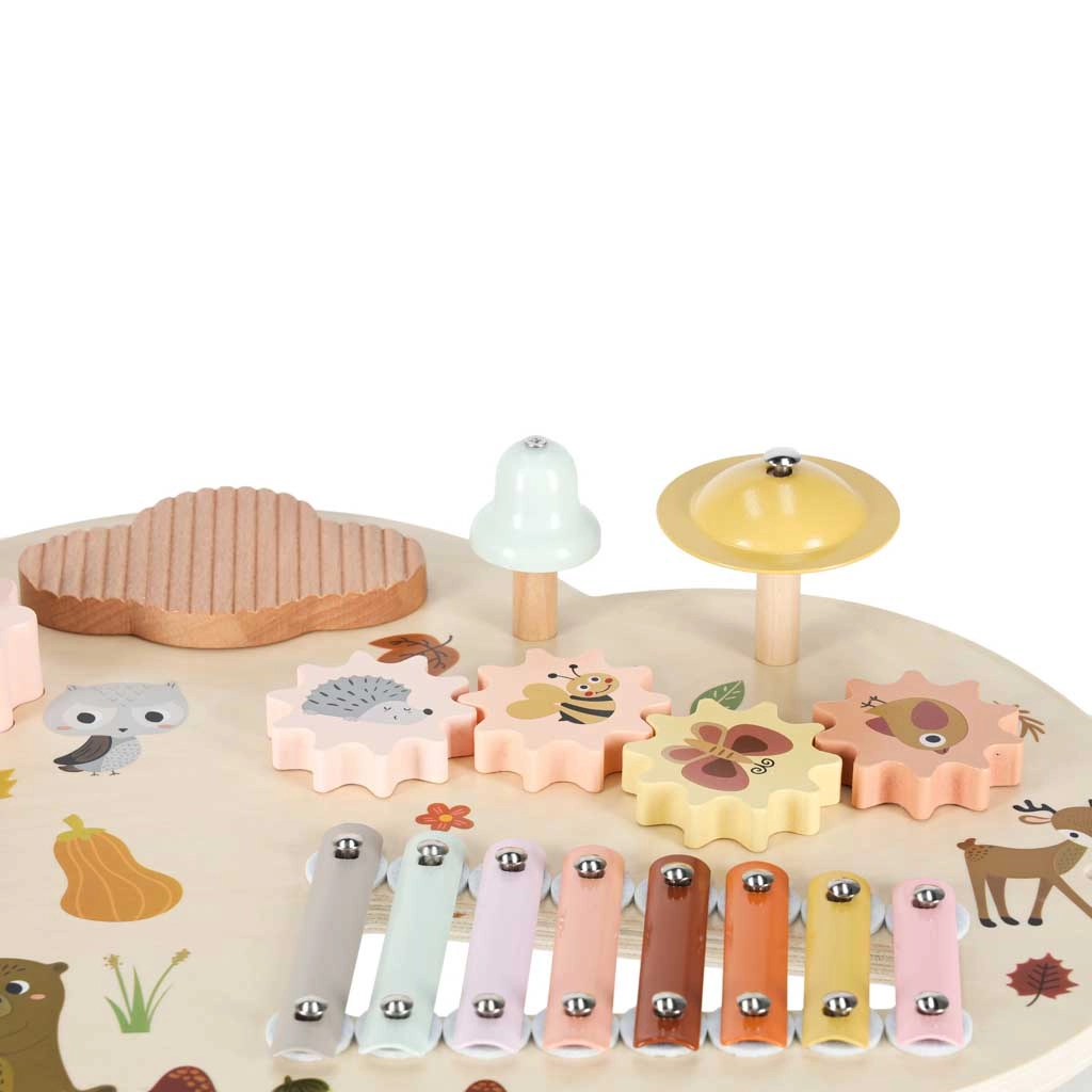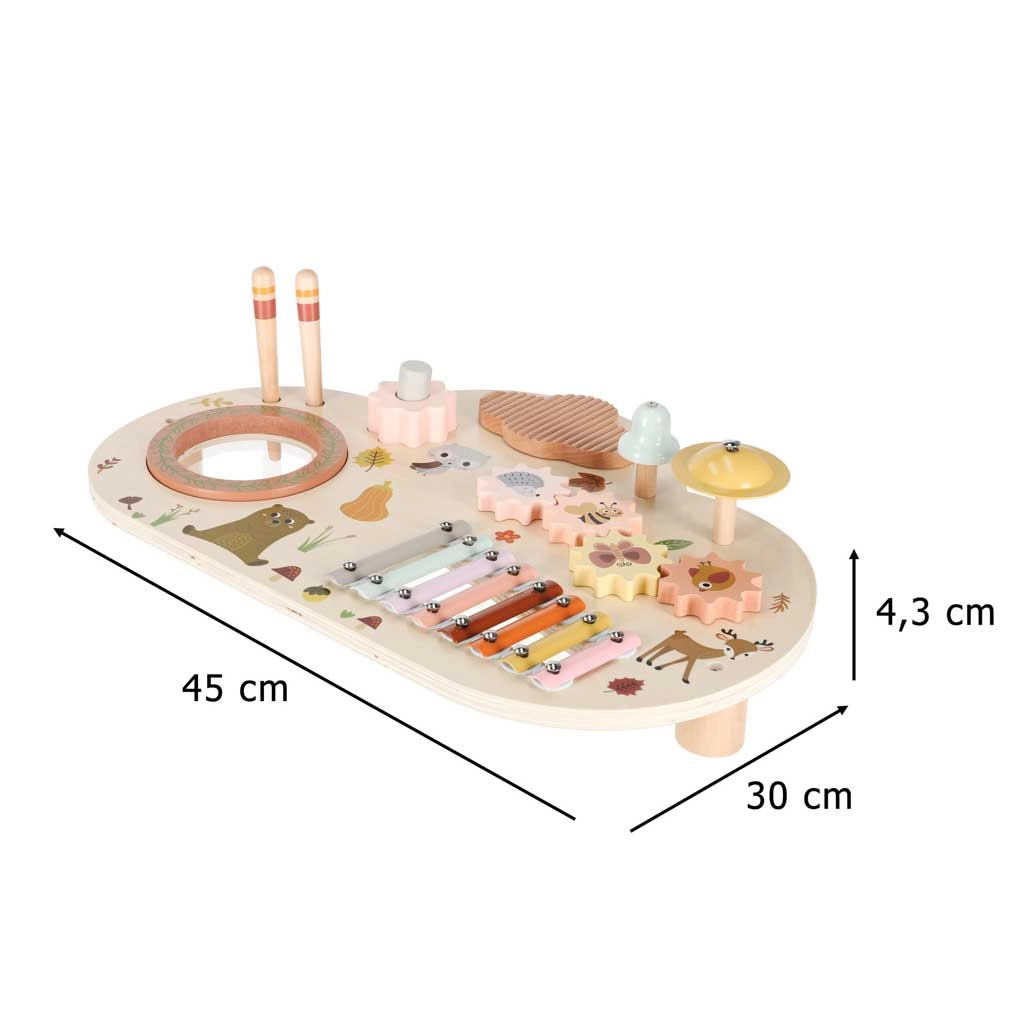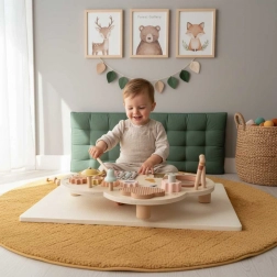 Az alacsony lábak és a masszív, természetes fából készült lap stabilitást biztosít ütögetéshez, forgatáshoz és tapsoláshoz – ideális totyogóknak.