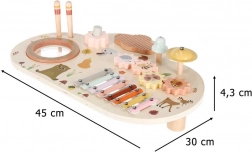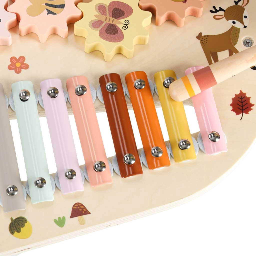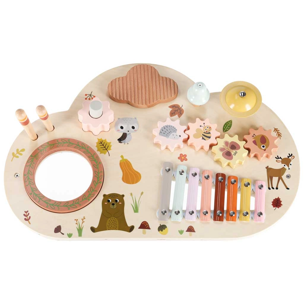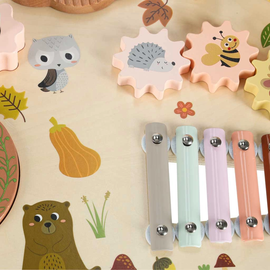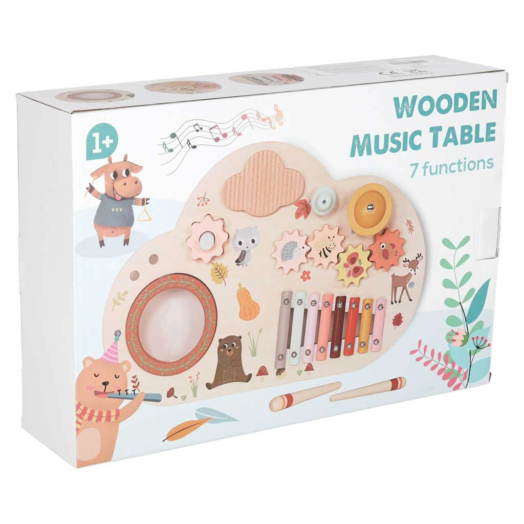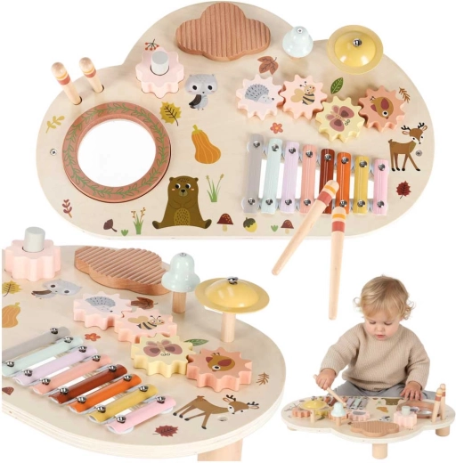 Fedezd fel a ritmus és a kreativitás világát ezzel a fa zenélő asztallal a legkisebbek számára. Ötvözi a xilofont, a dobocskát, a csengőt és további szenzoros elemeket a szórakozásért, tanulásért és a motorikus készségek fejlesztéséért. A stabil lábaknak, a minőségi fának és a pasztell dizájnnak köszönhetően ideális választás az első zenei felfedezésekhez.