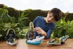 Ez a kompakt „Mikro dinosz-világ” nagy élményeket nyújt kis csomagban. A hegyes fogú dinoszauruszfej 90°-ban nyílik, és feltárja a filmszerű világból ihletett akciójáték-szettet. A négy különböző környezet, a három mikrofigura és a számos, ujjal működtethető mechanikus elem fejleszti a kreatív történetmesélést és a finommotorikát.