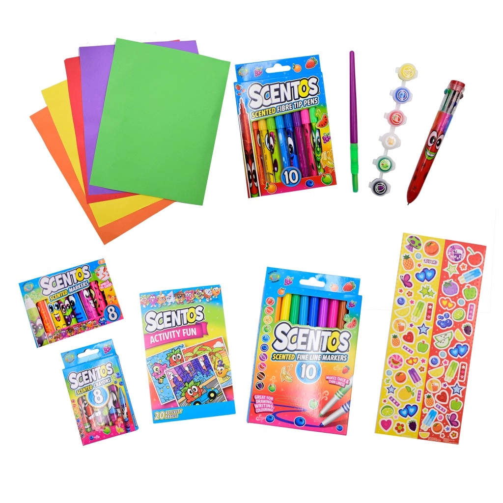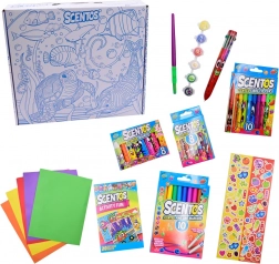 Fedezze fel a illatós kreatív készletet SCENTOS – közepes, amely 3 éves kortól órákon át tartó szórakozást és fantáziafejlesztést nyújt a gyerekeknek. A szettben illatós filcek, színes ceruzák, zsírkréták és speciális tollak találhatók különböző hegyekkel a változatos rajztechnikákhoz. Nem hiányoznak a temperafestékek ecsettel, tematikus matricák és színes papírok sem. Ideális a finommotorika fejlesztéséhez, az érzékelés és a kreativitás támogatásához.
