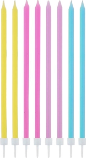 Teremtsen látványos hangulatot születésnapon vagy bármely ünnepen a magas neon gyertyákkal, amelyek azonnal kitűnnek a tortán. Karcsú formájuknak és telt színeiknek köszönhetően könnyen kombinálhatók bármilyen dekorral, és jól beleszúrhatók a krémbe vagy a piskótába.