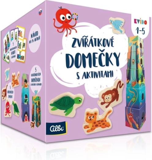 A Kvído – állatkás házikók feladatokkal készlet változatos játékokat kínál, amelyek természetes módon vezetik a gyerekeket a világ felfedezéséhez. A gyerekek ajtókat és ablakokat nyitogatnak, fa állatkákat párosítanak a házikóikkal, és feladatokat oldanak meg a kétoldalas feladatkártyák alapján. A játék gyermek és szülő közös interakciójára készült, de kiválóan működik önálló tevékenységként is.