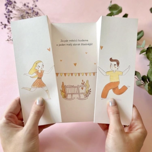 Remek választás gender reveal ünnepségekre, személyes átadáshoz vagy postázáshoz. A minimalista dizájn kiemeli a meglepetés pillanatát: Kisfiúnk lesz!