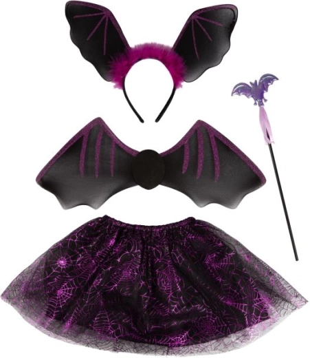 Ez a játékos denevér jelmez-kiegészítő szett minden jelmezrajongó gyermeket felvidít. A könnyű szárnyaknak és a kényelmes szoknyának köszönhetően ideális gyerekzsúrokra, farsangra és Halloweenre. Az anyag könnyen tisztítható és jól tartja a formáját, így a jelmez az egész esemény alatt csinos marad.