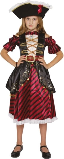 Aranyos jelmez kis kalandor lányoknak, amely bátor kalózlánnyá varázsol minden kislányt. Ideális farsangra, születésnapi bulira és otthoni játékra. A szett része a ruha és a kalózkalap. A kényelmes 100% poliészter anyag könnyű ápolást és kellemes viseletet biztosít.