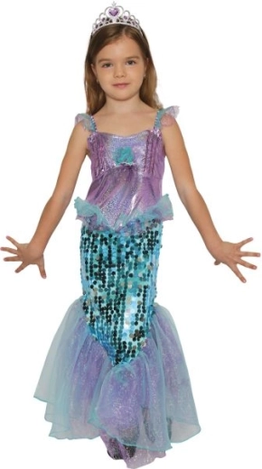Ez a gyermek sellő jelmez bármely kislányt az óceán varázslatos uralkodójává változtat. A csillogó flitterek és finom részletek halpikkely-hatást keltenek, miközben a kényelmes szabás szabad mozgást enged tánc és játék közben is. A szett része az összehajtható, „drágakövekkel” díszített korona, amely teljessé teszi a tengermélyi mesék ihlette tündérmesés megjelenést.