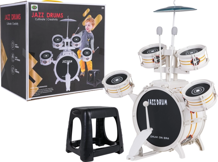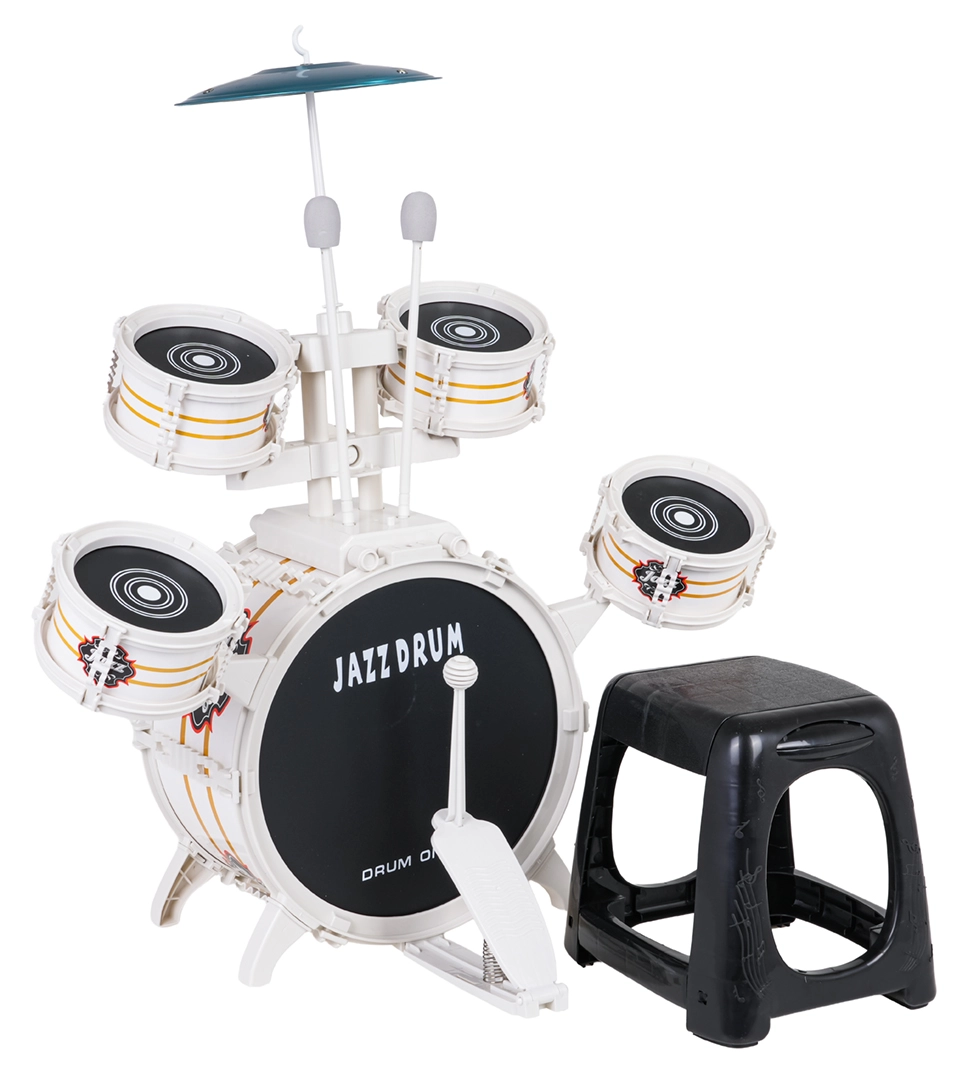Ez a látványos, fehér gyermek dobkészlet nagy odafigyeléssel készült, hogy egy professzionális hangszer benyomását keltse. A gyerekek élvezni fogják a játékot a pedálos nagydobon, a négy kis tom-dobon és a fém cintányéron. A csomag része egy stabil szék és egy pár dobverő is, így az összeszerelés után azonnal kezdődhet a zenélés.