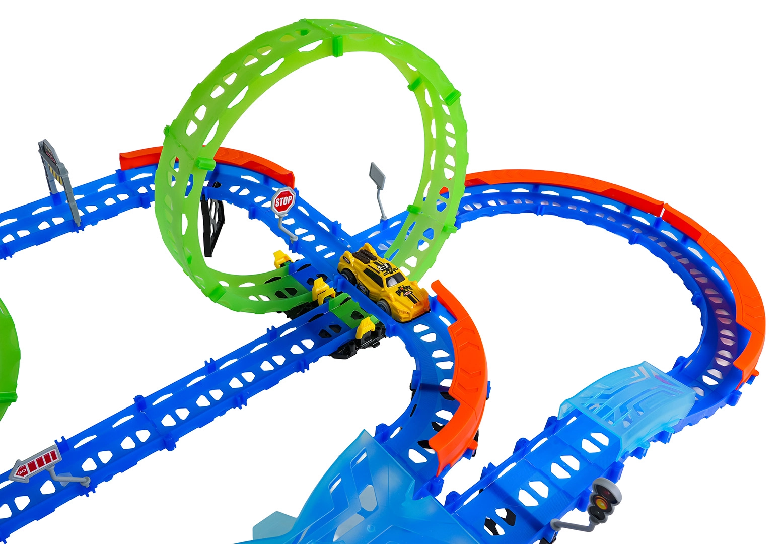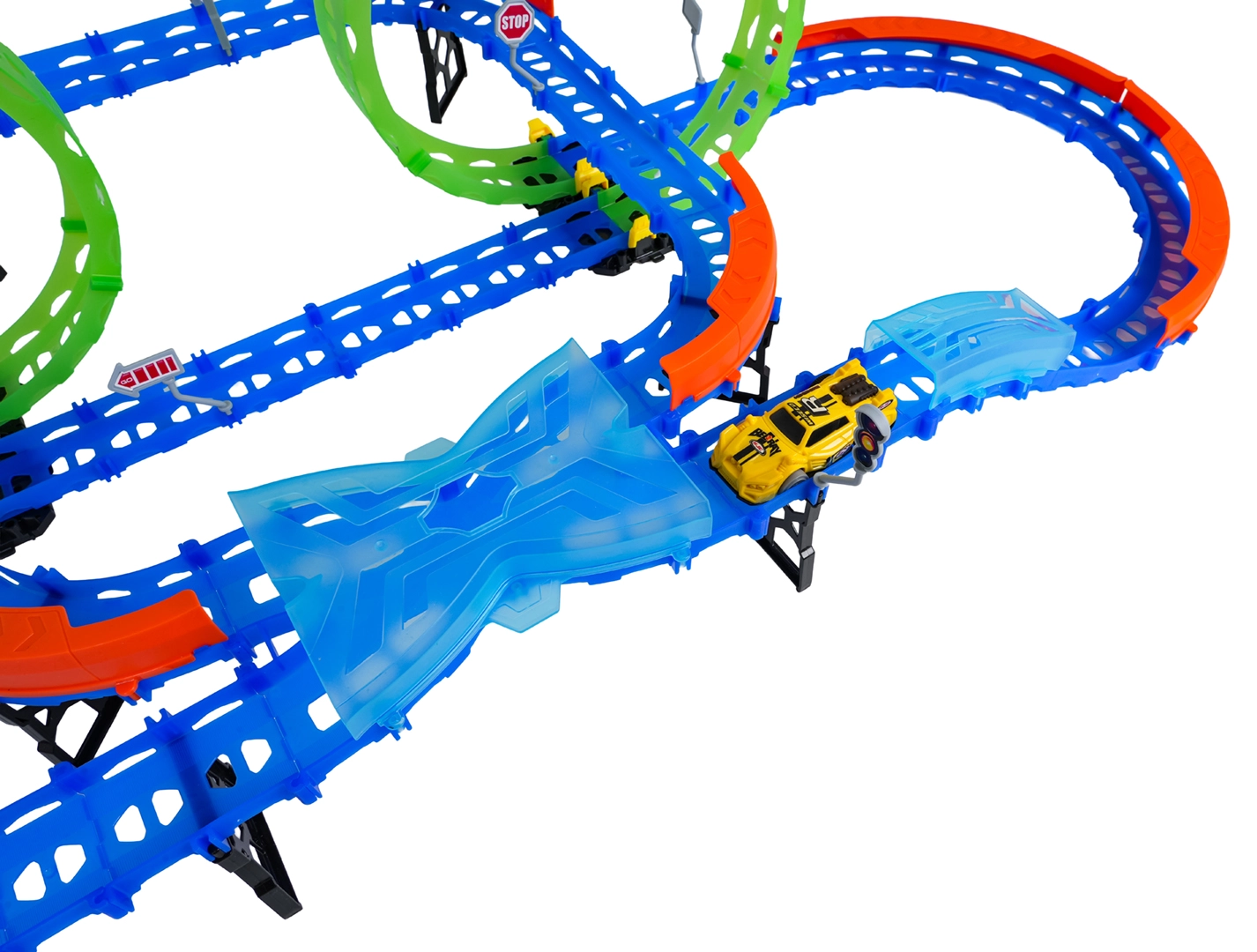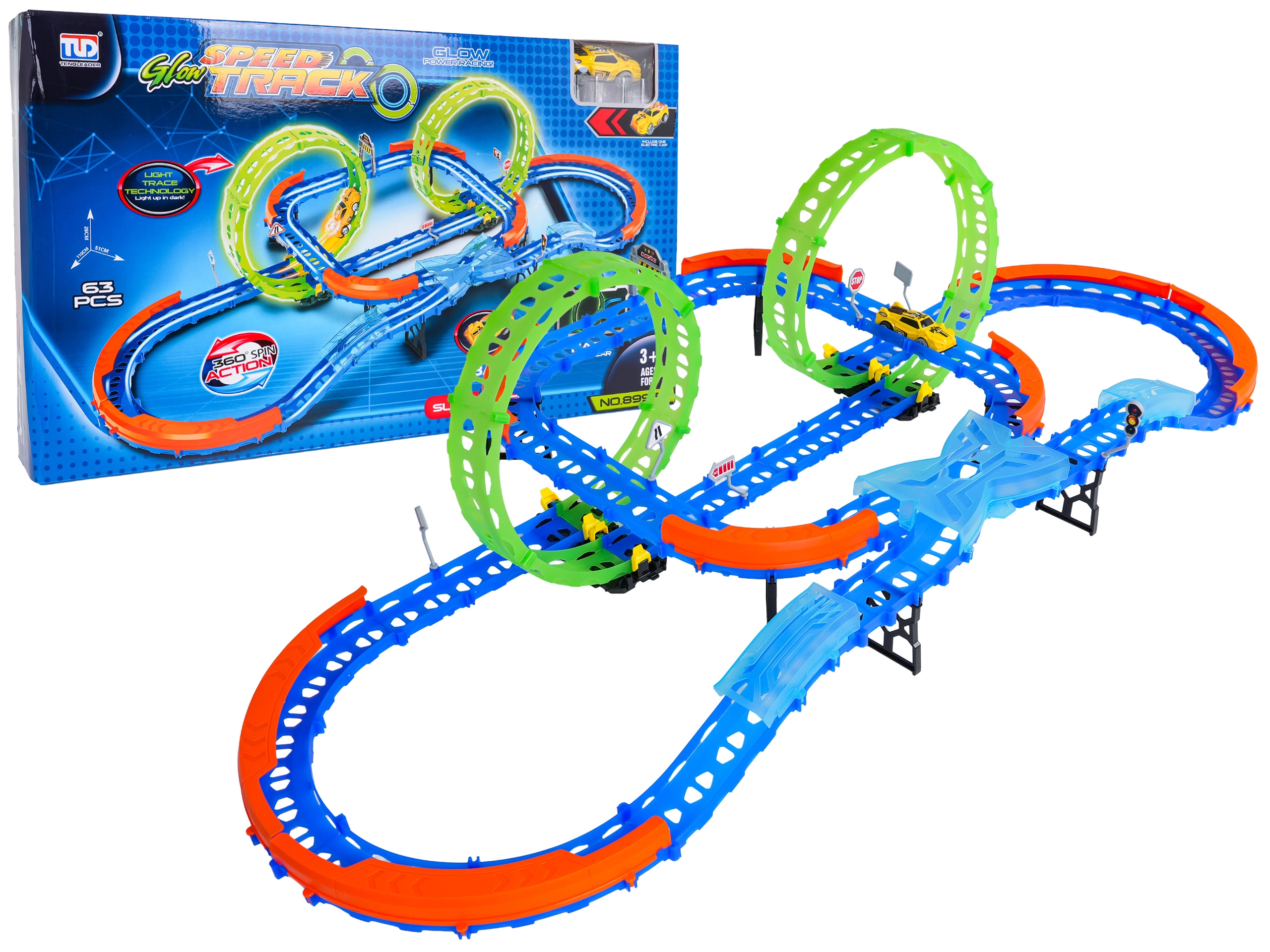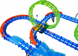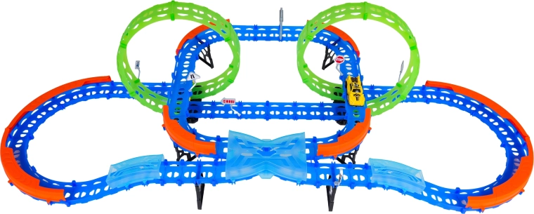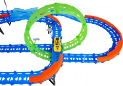 Építs színes pályát hidakkal, kanyarokkal és két hurokkal, majd figyeld, ahogy a kisautó nagy sebességgel száguld! A fluoreszkáló elemek megvilágítás után sötétben felragyognak, így a verseny még akciódúsabb és szórakoztatóbb lesz.