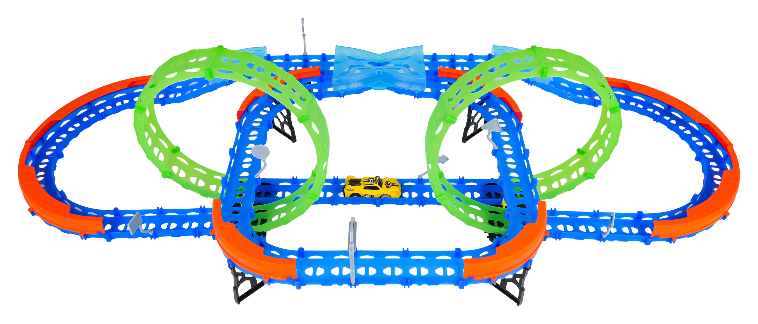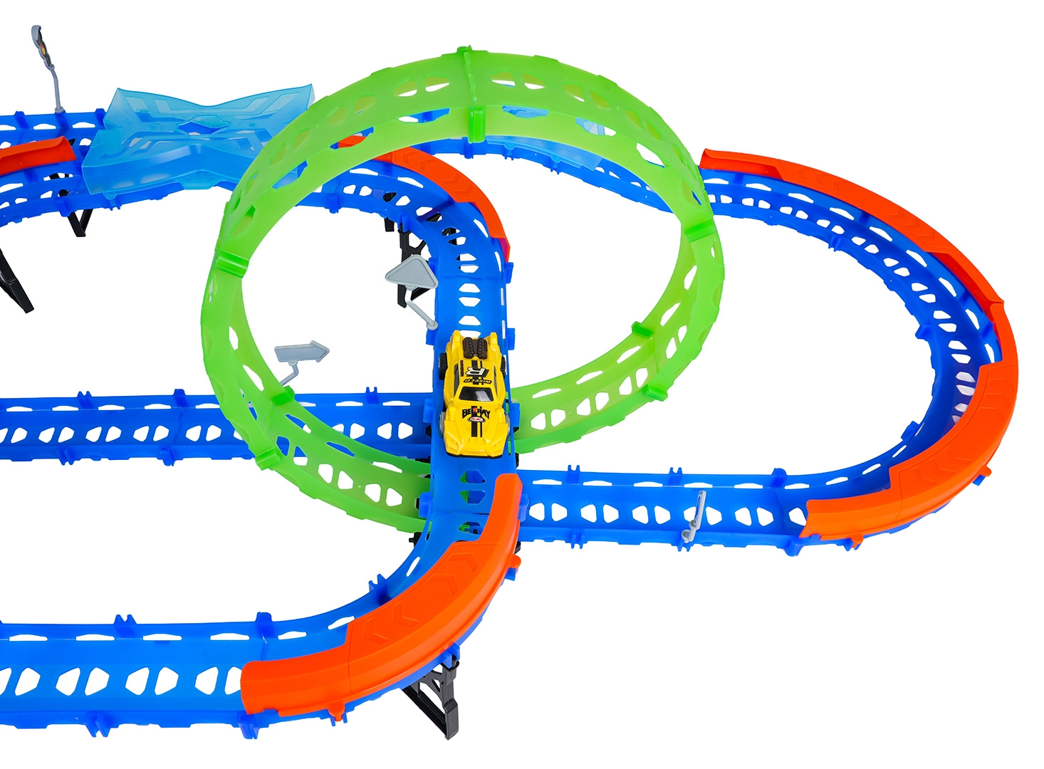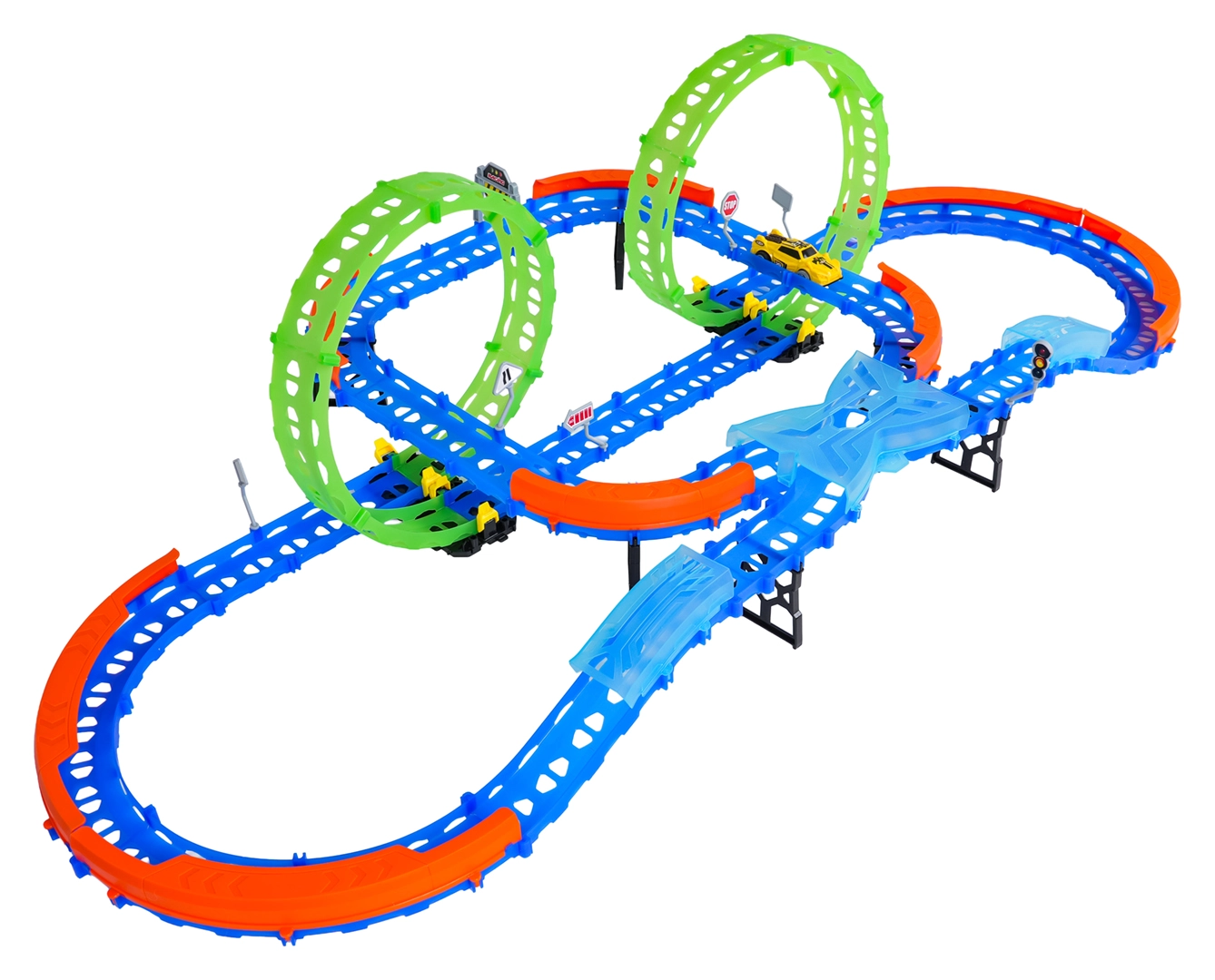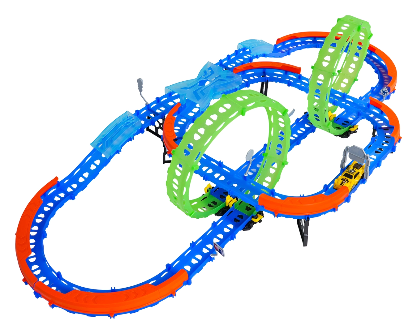 Építs színes pályát hidakkal, kanyarokkal és két hurokkal, majd figyeld, ahogy a kisautó nagy sebességgel száguld! A fluoreszkáló elemek megvilágítás után sötétben felragyognak, így a verseny még akciódúsabb és szórakoztatóbb lesz.