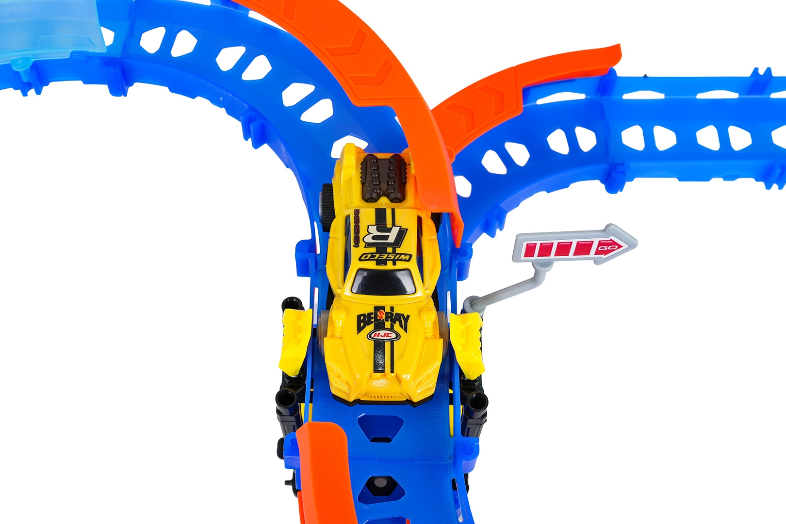 A drámai loopok próbára teszik a sebességet és a stabilitást. A masszív csatlakozásoknak és támaszoknak köszönhetően a kisautó magabiztosan száguld át a hurkokon.