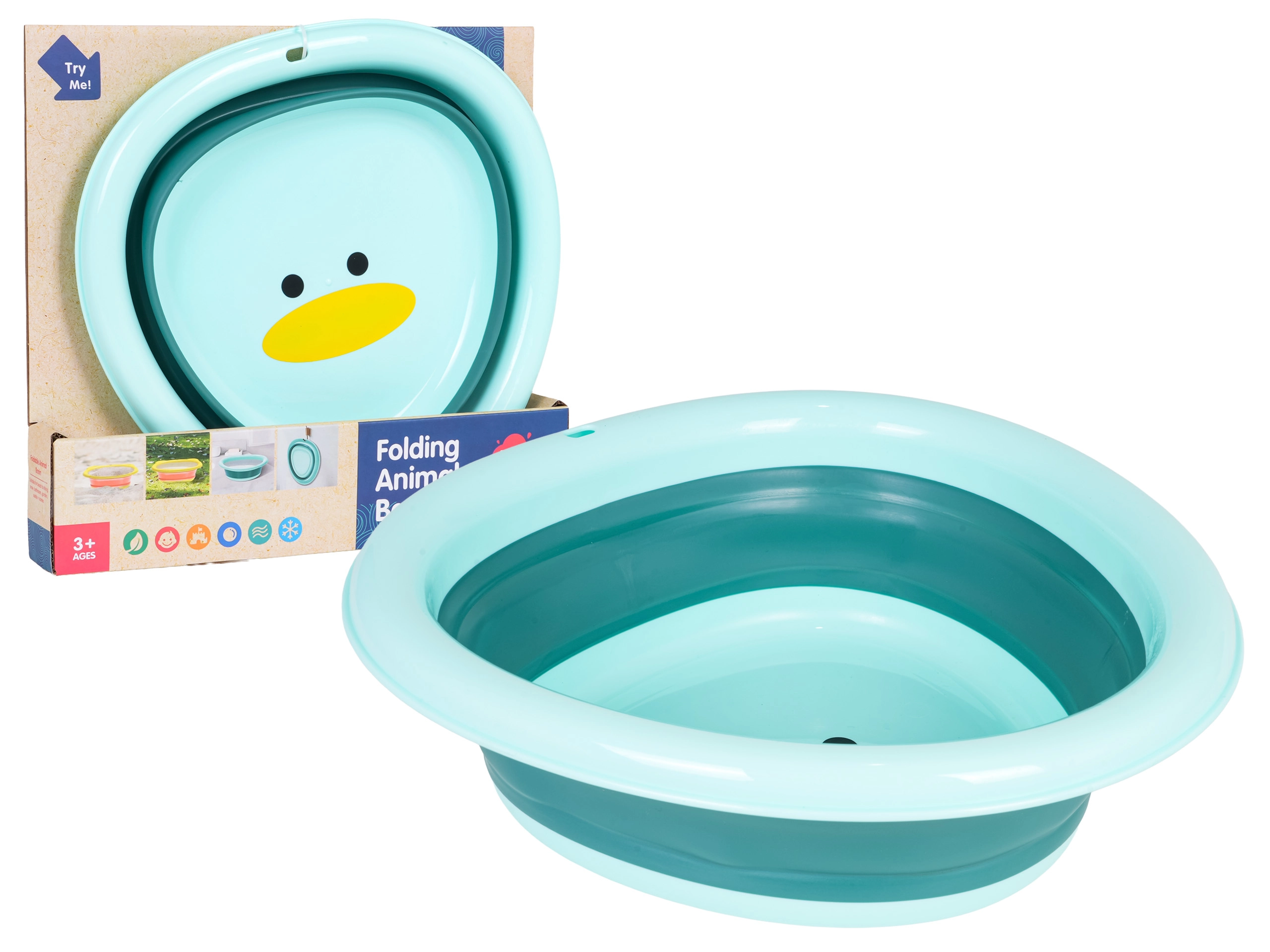 Aranyos, összecsukható vödör kiskacsa motívummal 3 éves kortól. Könnyű, helytakarékos, mégis tágas – ideális a strandra és a homokozóba is. Biztonságos műanyagból és szilikonból készült, könnyen hordozható és helyet spórol.