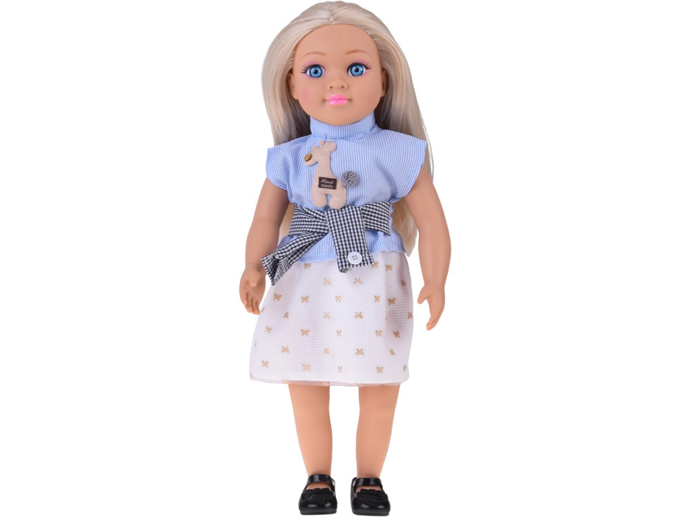 Fedezze fel a klasszikus divatbaba varázsát, amely ötvözi a bájt, a minőséget és a játékosságot. A hosszú szőke hajnak köszönhetően remekül alkalmas fésülésre és frizurák készítésére, míg a nagy kék szemek és a finom mosoly bájos kifejezést kölcsönöznek neki. A puha test és a minőségi műanyag részek kényelmes kezelhetőséget és tartósságot biztosítanak a mindennapi játék során.