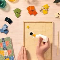 Készítsen saját dekoratív mozaikot a DJECO kreatív készletével. A teljes ATELIER 73 szett színes csempéket, ragasztót, eszközöket és alaplapot tartalmaz, így azonnal elkezdheti az alkotást. Ideális kezdőknek és haladóknak egyaránt, akik fejleszteni szeretnék a finommotorikát, a türelmet és a részletek iránti érzéket.