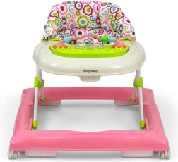 A Milly Mally Patrol Flower bébijáró ideális választás aktív babáknak kb. 6 hónapos kortól 12 kg-ig. A háromszintű ülésmagasság-beállítás lehetővé teszi a járóka testre szabását, hogy a lábacskák kényelmesen érintsék a talajt. A puha, párnázott háttámla és a könnyen tisztítható anyagok mindennapi kényelmet nyújtanak.
