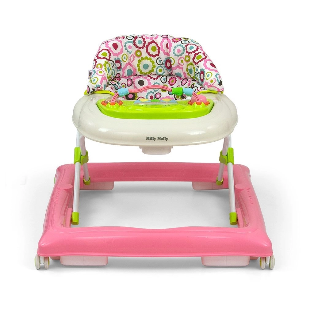 Fedezze fel a kényelmes és biztonságos MILLY MALLY Patrol Flower bébijárót, amely segít a babáknak megtanulni a mozgást és felfedezni a világot. Kínál magasságban állítható ülést, puha háttámlát, multimédiás játékpanelt fényekkel és dallamokkal, valamint csendes, forgó kerekeket, amelyek nem karcolják a padlót. A gumis ütközőknek és a masszív szerkezetnek köszönhetően a használat biztonságos és stabil.