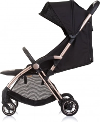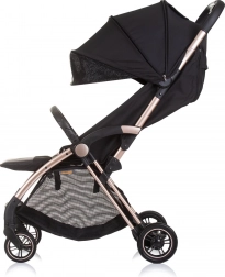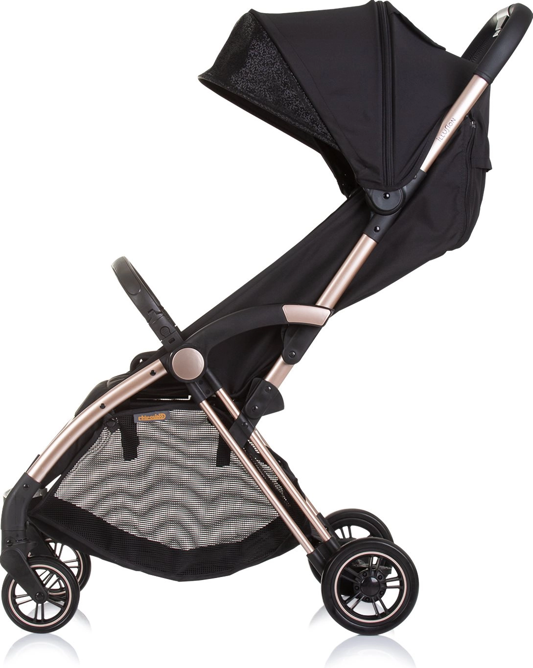 A maximális kényelemért 3 állású háttámla, állítható lábtartó és nagy kupola található szellőző résszel és apróságoknak való zsebbel. A szülők értékelni fogják a ökobőrrel bevont tolókart, a nagy tároló kosarat, valamint a gyorsan levehető, rugózott kerekeket és a összekötött féket a biztonságos megálláshoz.