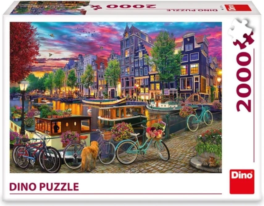 Ez a nagyformátumú DINO puzzle a festett Amszterdam egyedi hangulatát hozza el – csatornák, hajók, virágok és történelmi homlokzatok élénk színekben. A 2000 precízen vágott darab a válogatós kirakórajongóknak és a dizájnmotívumok kedvelőinek is örömet szerez.