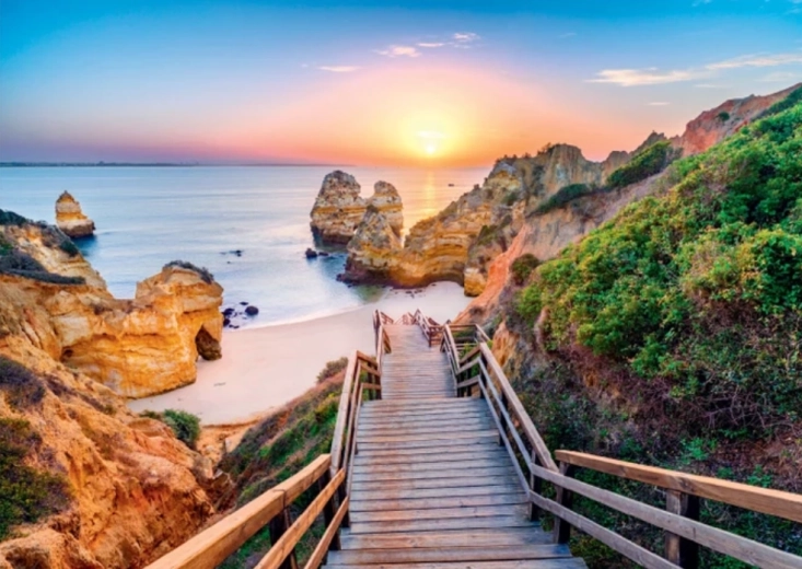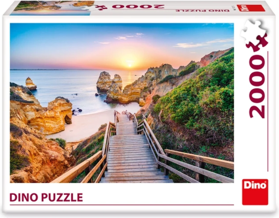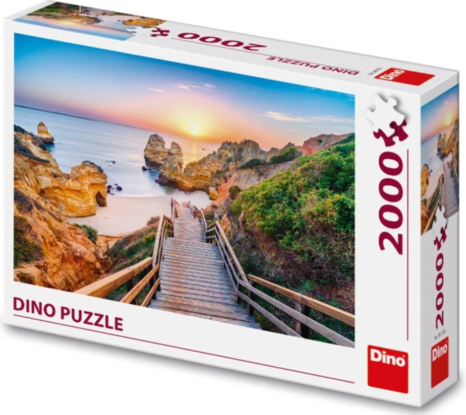 Fedezze fel a tengerpart varázsát a DINO Camilo part 2000 darabos kirakóval. A lépcsővel a homokos öbölhöz vezető nagyformátumú motívum, a drámai sziklákkal és a naplemente meleg színeivel olyan képet alkot, amely bármely enteriőrben remekül mutat. A pontos kivágásnak és a minőségi kartonnak köszönhetően az elemek tökéletesen illeszkednek, a kirakás pedig gördülékeny és kielégítő.