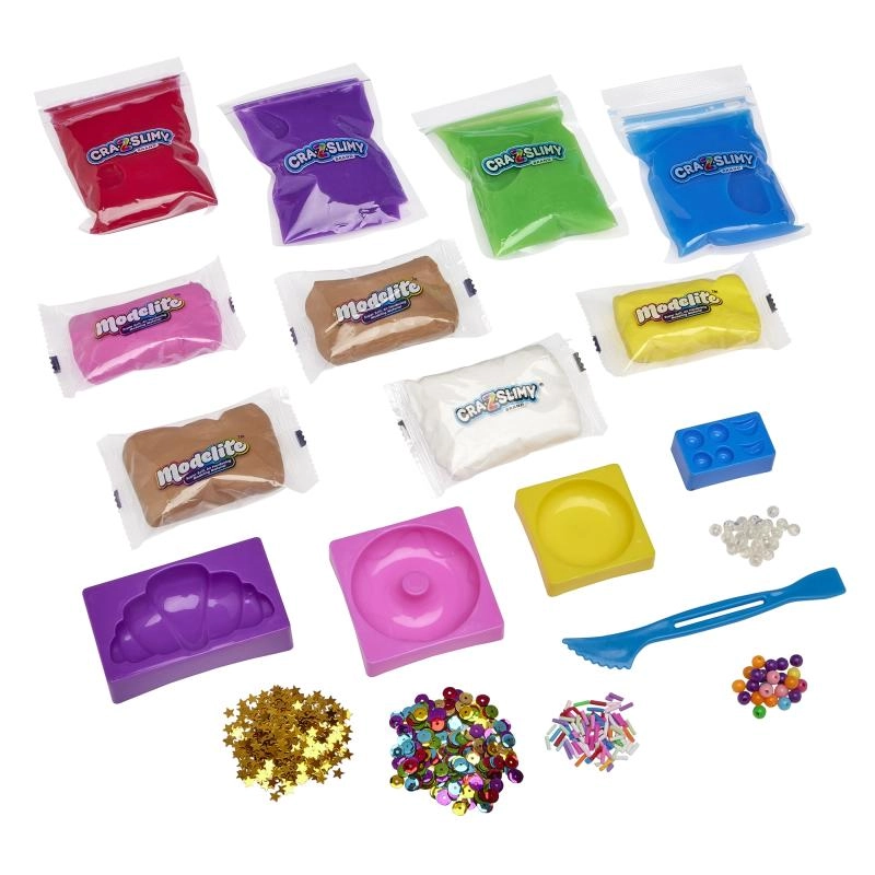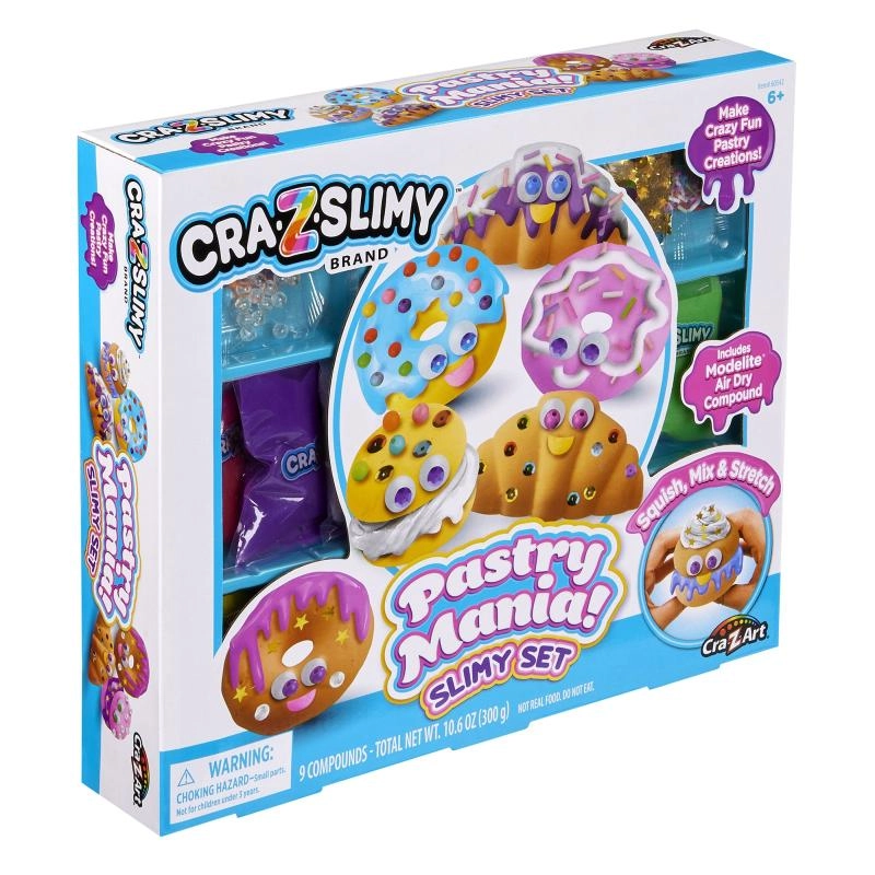 Készítsenek bájos desszertalkotásokat morzsák és rendetlenség nélkül. A Cra-Z-Slimy Cukrász mánia szett különböző állagú slime-okat, könnyű, levegős gyurmamasszát és gazdag díszítést (csillámok, konfetti, gyöngyök) tartalmaz. A praktikus, péksütemény alakú formáknak köszönhetően a formázás könnyű és szórakoztató még kezdőknek is.