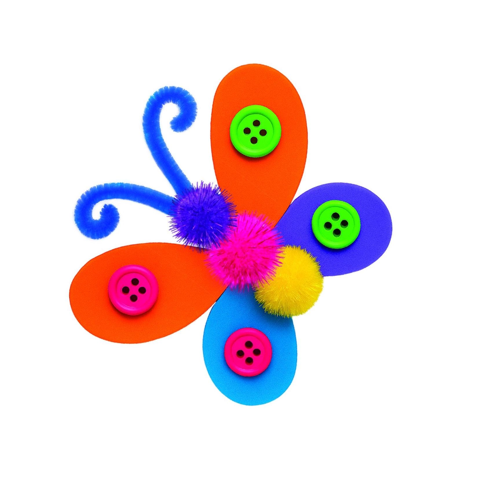 Kombinálja a habszárnyakat, gombokat, pomponokat és szőrös zseníliadrótokat, és varázsoljon egyedi pillangókat. Remek a finommotorika és a színkombinációk gyakorlásához.