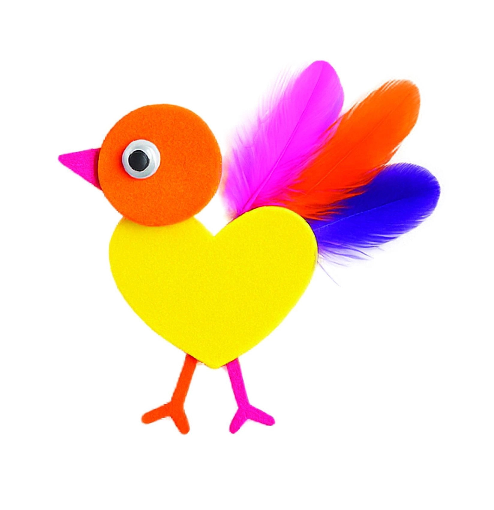 Habformákból, szemecskékből és színes tollakból aranyos madárkákat és más állatfigurákat készíthetnek – ideális, gyors projektek kis alkotóknak.