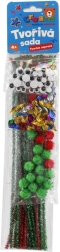 - Különféle kreatív anyagok és kiegészítők (a színek és kombinációk készletenként eltérnek)